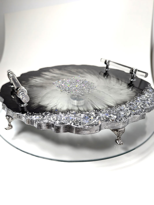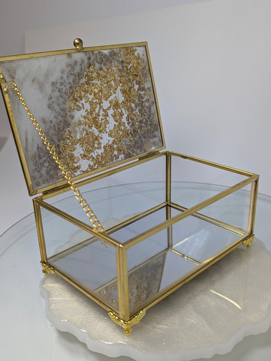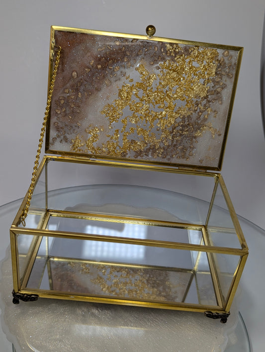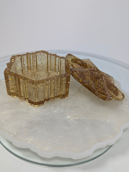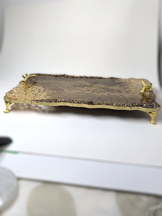 Gold Bronze Resin Tray with Gold Flakes and Golden Stones